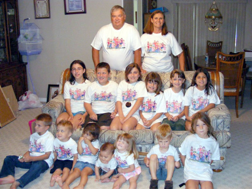 Jeannie Peiffer Tindall with husband Ray and all 13 Grandkids June 2008